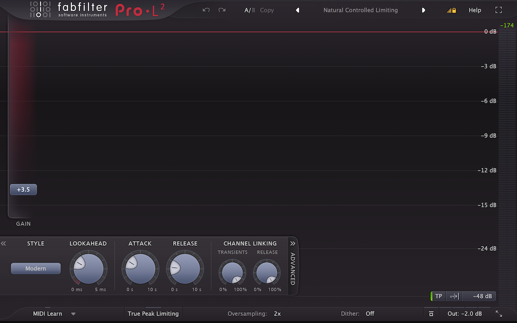 7. FabFilter Pro-L 2 Limiter: Itt is inkább csak preset-böngészés ment hangzás szempontjából, azért tettem csak be, hogy ne az utolsó maximizer vállán legyen a teher a végső hangerő elérése szempontjából.
